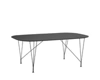 Oval dining table that encourages conversation and eye contact with all guests. Also available in two more versions, a dining table with two extendable tops and a smaller café table size.
